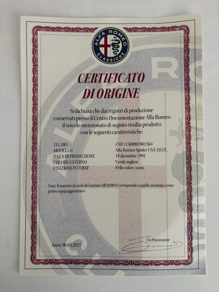 CLASSIC CARS - ALFA ROMEO SPIDER VELOCE 2.0 IV SERIE MOD. U.S.A. 1991
