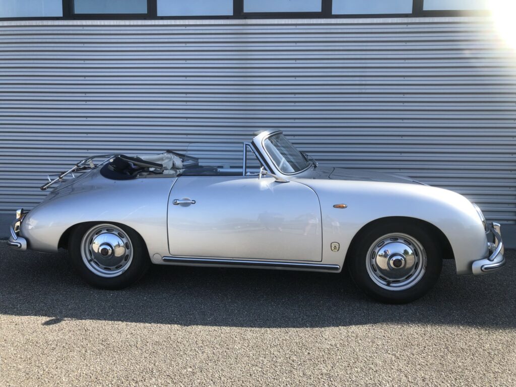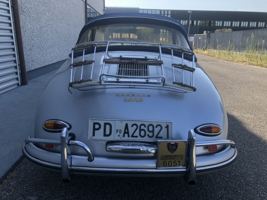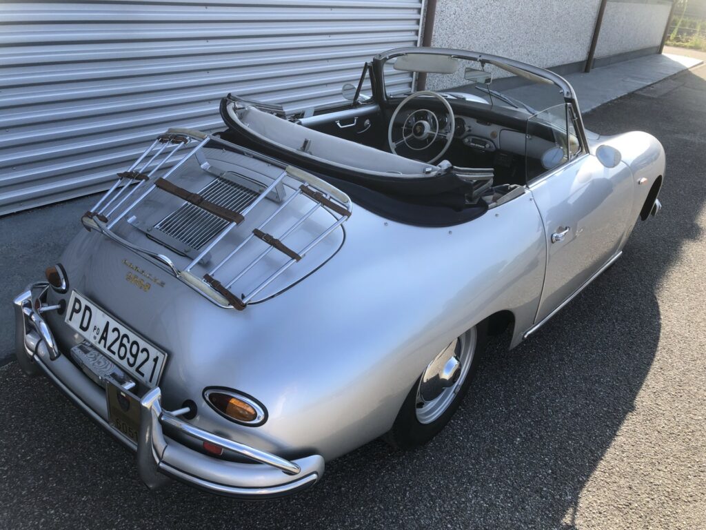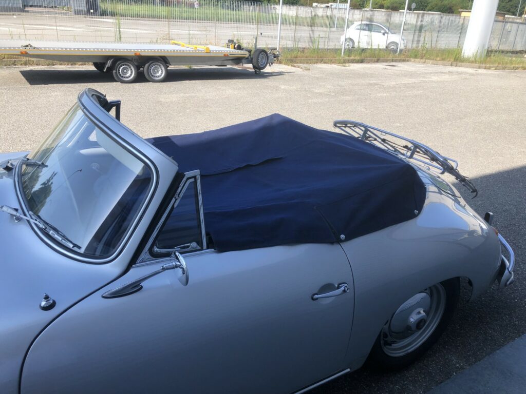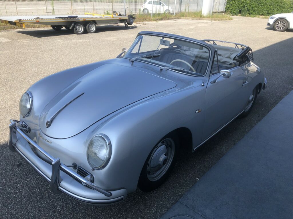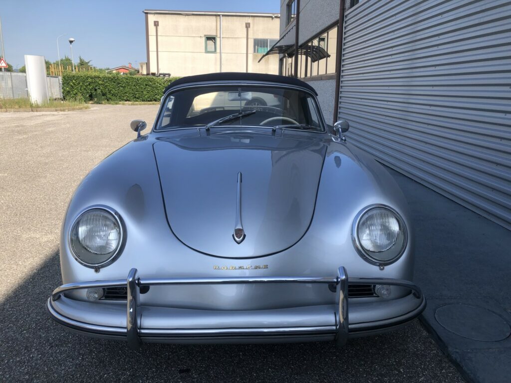 Carrozzeria Reutter, prodotta nel colore originale bianco panna con interni colore rosso e capote nera. Veicolo importato in Italia nel 1988 dagli USA e restaurato completamente, reimmatricolato in Italia nel 1990: è stata verniciata per scelta del nuovo proprietario in colore argento “silver metallic 5706” con interno in pelle blu e capote blu, come da specifiche Porsche (i lavori di restauro sono ben documentati e corredati da documentazione fotografica dettagliata).