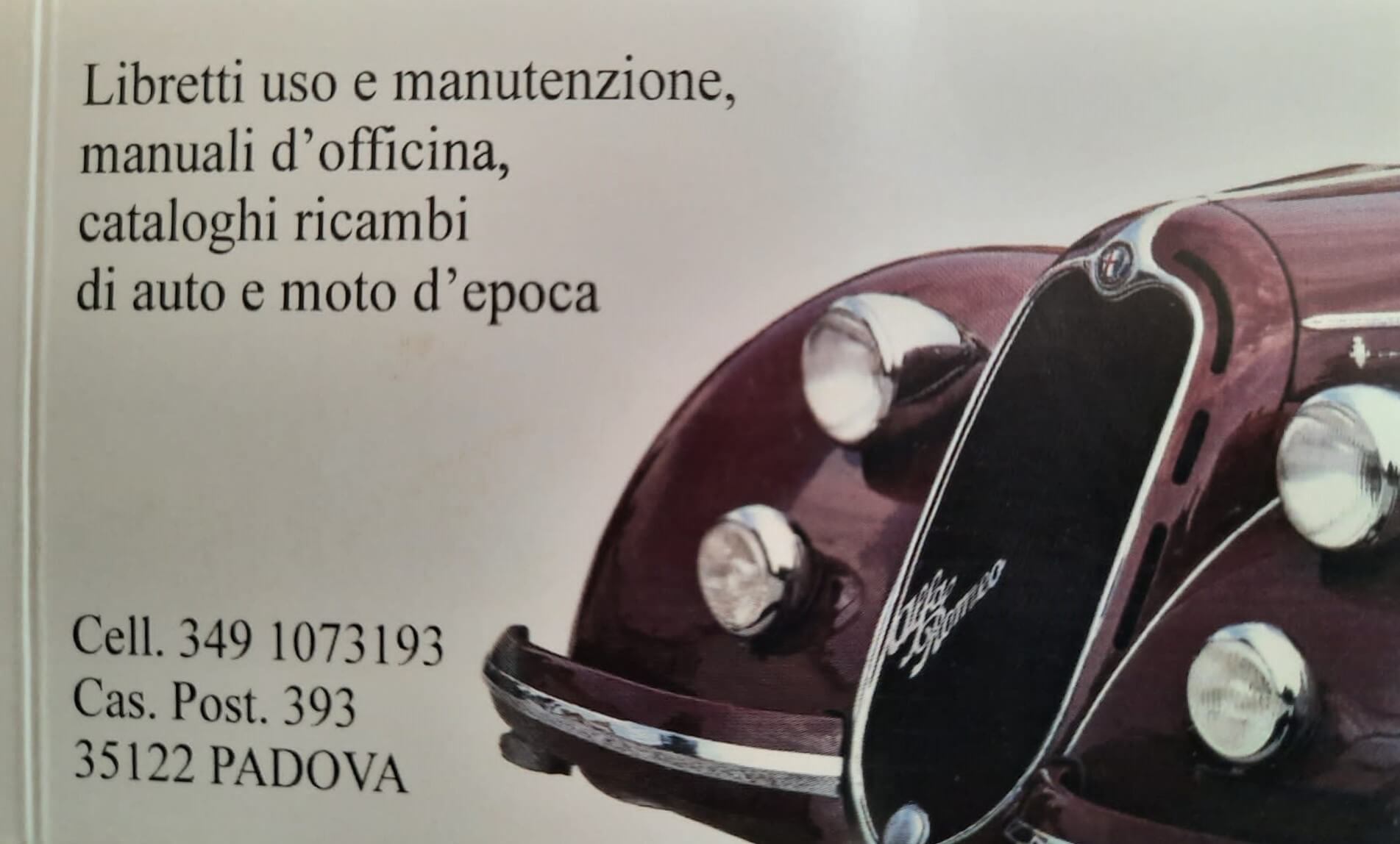 Libretti uso e manutenzione, manuali d’officina, cataloghi ricambi di auto e moto d’epoca.