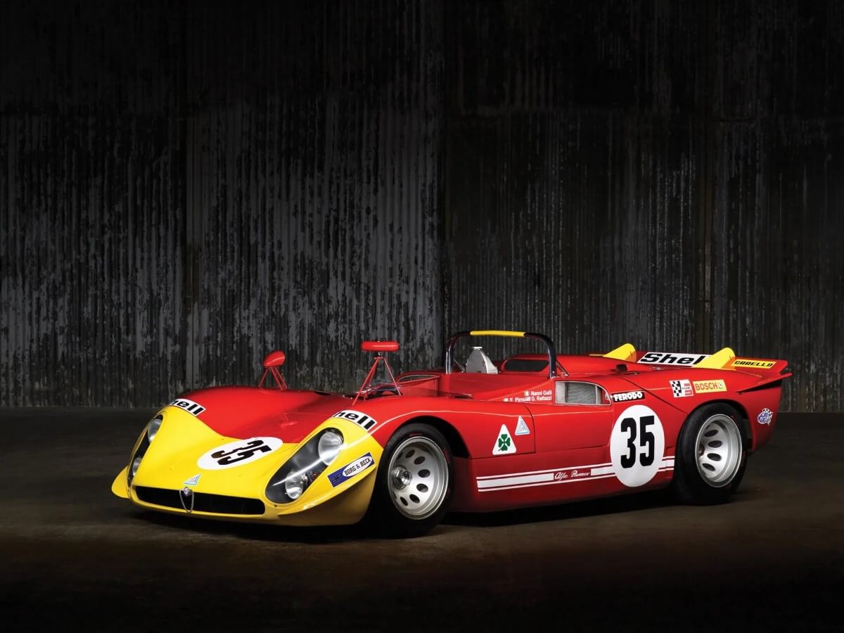 La storia della 33 nasce sulla scia dei primi grandi successi sportivi dell’Autodelta, fondata nel 1961 come squadra corse ufficiale della casa del Biscione. Dopo le grandi affermazioni dei modelli sviluppati su base Giulia, ovvero le GTA, TZ e TZ2, a partire dal 1966 gli ingegneri Orazio Satta Puliga e Giuseppe Busso iniziano a lavorare su una sport prototipo, nome di progetto 105.33.