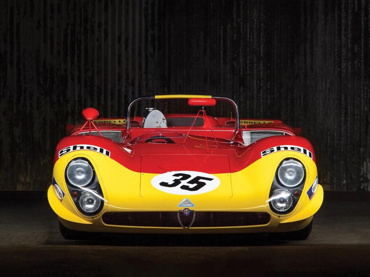 Tra questi, la nostra attenzione è stata catturata da un autentico “pezzo da novanta”, di quelli con la storia e il pedigree: parliamo della Alfa Romeo Tipo 33/3 del 1969 ex Nanni Galli, per la quale ci si aspetta un risultato nell’ordine dei due milioni di euro. Costruita e schierata in gara dall’Autodelta, la squadra corse ufficiale dell’Alfa Romeo a cavallo tra gli anni sessanta e settanta, e identificata dal numero di telaio AR 105-80*023*, questa è la vettura condotta da Galli e da Rolf Stommelen alla 24 Ore di Le Mans del 1970. Spinto da un possente V8 da tre litri con una potenza di oltre 440 cavalli, lo stesso esemplare viene poi affidato a Toine Hezemans e Masten Gregory alla Targa Florio del 1970 e, successivamente, appare pure nella pellicola culto “Le Mans” di Steve McQueen.