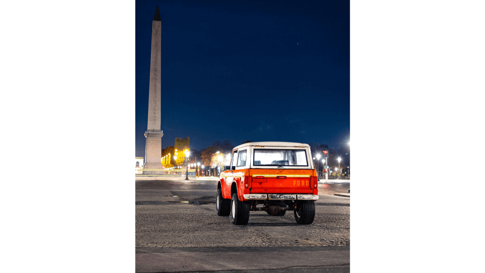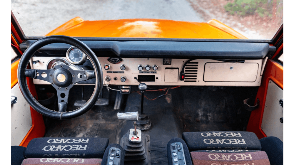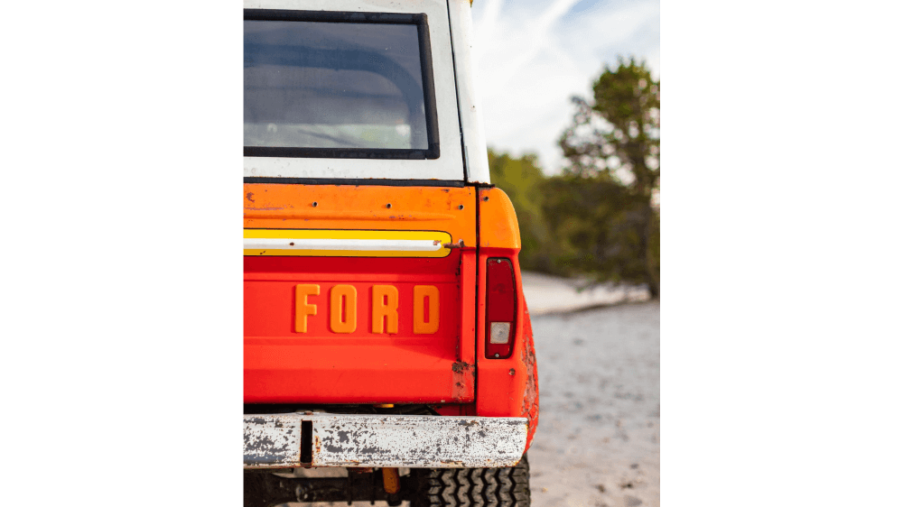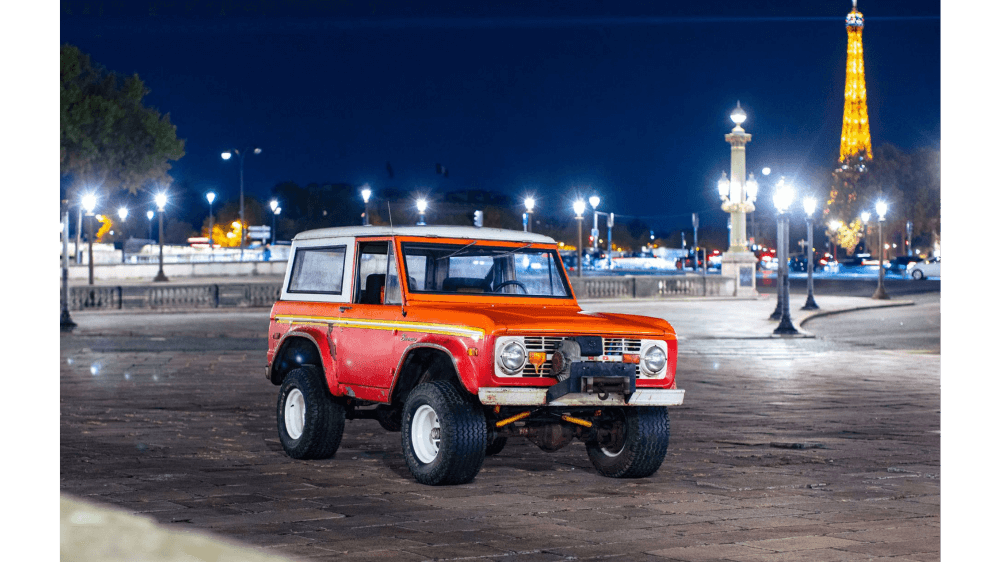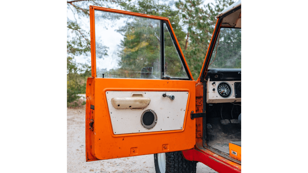 L’esemplare, numero di telaio U15GLB09627, si presenta in condizioni da restauro: non è più stato toccato dalla morte del proprietario, la vernice è danneggiata e gli interni consunti. Ma sono ancora la stessa vernice e gli stessi tessuti accarezzati e vissuti da Gilles, e questo, per un appassionato, vale più di qualsiasi restauro. E il Bronco sarebbe il mezzo perfetto per trainare la Ferrari 312 di Gilles sulla rotta per il Monaco Historic Grand Prix.