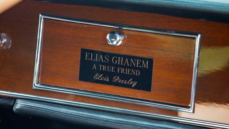 Lo stile, soprattutto esterno, è sempre stato controverso e sicuramente non è invecchiato benissimo. Detto questo, esiste un solido gruppo di amatori e collezionisti di questo modello decisamente fedeli e affezionati, ragion per cui raramente se trova qualcuna in vendita. E tra questi, sicuramente c’è qualcuno che non si lascerà sfuggire l’esemplare del dottor Elias Ghanem, sulla cui plancia c’è una targa che riporta la dedica “Elias Ghanem, un vero amico, Elvis Presley”. La vettura indica allo strumento appena 31.856 miglia ed è accompagnata da una copia del New Vehicle ID dello Stato della California del 1971 registrato a Elvis Presley.