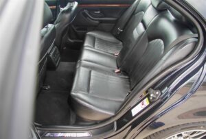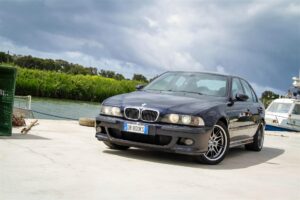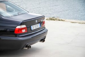 Rispetto ai modelli precedenti la M5 basata sulla nuova, bellissima Serie 5 E39, paga ancora un altro piccolo pegno sull’altare della sobrietà. Senza eccessi, la nuova sportiva è proprio cattiva. Pur rimanendo elegantissima, mostra i muscoli e l’aggressività che ci si aspetta da una bruciasemafori che ha sì quattro porte, ma sul passaporto sfoggia un inedito V8, corpi farfallati elettronici per ogni cilindro, blocco e teste in alluminio, fasatura variabile con doppio sistema VANOS, carter semisecco, propulsore da ben 4,950 litri a 4 alberi a camme (due per bancata) con quattro valvole per cilindro e la bellezza di 400 cavalli e 500 Nm. Un piccolo mostro capace di dar la paga a diverse berlinette sportive trasportando in souplesse tre ospiti sul divano posteriore.