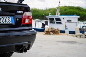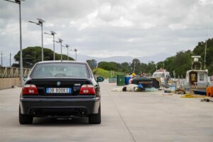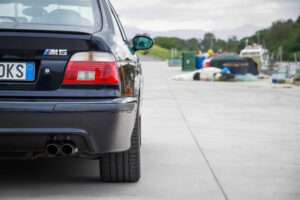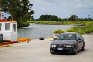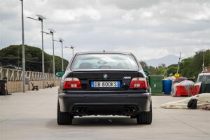 Questa bellissima M5 E39, immatricolata a fine 2000 e tra i primissimi esemplari ristilizzati, strepitosa nella sua livrea scura, è la prova che le forme semplici, archetipiche, resistono indenni alla prova del tempo. Linee semplici, equilibrate, proporzionate, naturali, dove tutto sta esattamente dove deve stare, in un armonia che non ha età. Con tanta elettronica, certo, ma non ancora “troppa”. Anche per questo, nonostante abbia oltre cento cavalli in meno della E60 e abbia abbondantemente superato i vent’anni, questa M5 è ancora tremendamente divertente e coinvolgente da guidare. Una bellezza classica, da guidare in modo classico.