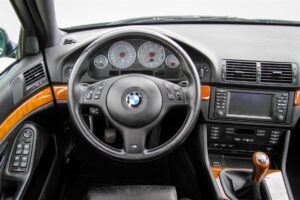 Ed è proprio la E60, troppo grossa, troppo diversa, troppo potente (con un V10 da 507 cavalli), troppo tutto, a consegnare al mito la E39. La E60 è una macchina profondamente diversa, una macchina del nuovo millennio, e questo rende la vecchia M5 l’ultima grande berlina sportiva BMW del vecchio secolo, della vecchia generazione. L’ultima, insomma, che si guida alla vecchia maniera. Una macchina che, appena sostituita dal nuovo modello, diventa istantaneamente un classico. Ma perché? Cerchiamo di capirlo guardando l’esemplare fotografato per Agorauto, su cui è anche inserzionato.