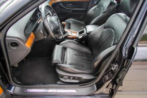 A frenare i 1800 chili di tecnologia e libidine ci pensano i dischi freno “flottanti” da 345 mm davanti e 328 dietro, che bloccano rispettivamente cerchi da 18” con pneumatici 245/40 e 275/35. Dentro, il lusso è dato tanto dai materiali quanto dalla qualità percepita. Pelle e radica rivestono tanta meccanica e altrettanta elettronica, da arricchire a richiesta con radio CD, telefono, navigatore satellitare e TV.