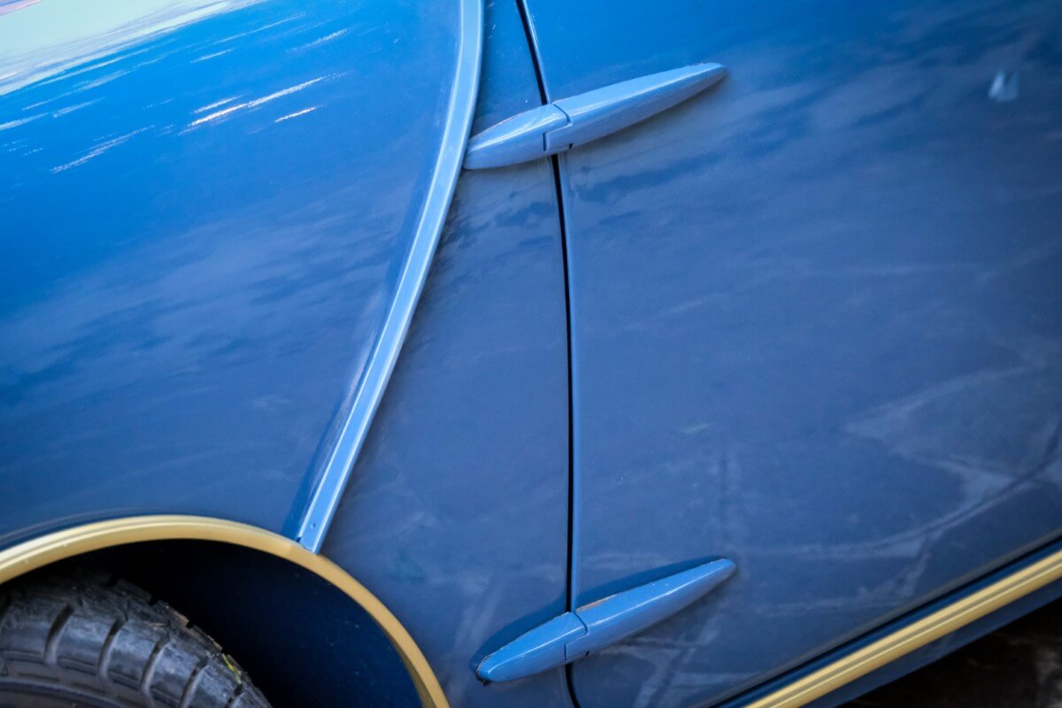 Verniciata in Island Blue con tetto Snowberry White, fa parte della collezione dello specialista lombardo Coopermans.it da circa venticinque anni ed è stata recentemente oggetto di restauro su carrozzeria e motore, mentre l’interno è interamente conservato ad eccezione della moquette.