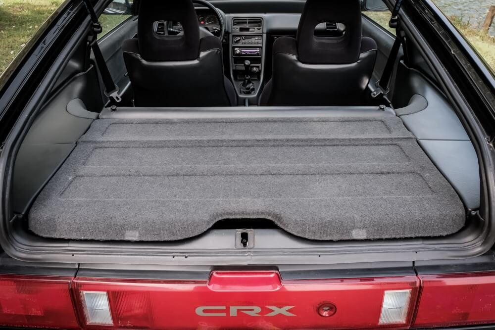 Guidare una CRX in questo stato di conservazione è quindi un’opportunità da cogliere al volo, perché restituisce le sensazioni che si provavano all’epoca al volante di un esemplare nuovo o quasi. La macchina in foto è infatti stata soltanto riverniciata esternamente per eliminare piccoli segni da parcheggio, ma per il resto è intonsa, in virtù anche della percorrenza esigua: meno di 75,000 km in trentatré anni. Persino i delicatissimi interni sono ancora perfetti, nonostante siano i primi a cedere; i bei sedili in velluto tipicamente si logorano sulle spallette esterne, mentre lo schienalino posteriore in finta pelle e i pannelli porta in velluto soffrono molto l’esposizione al sole.