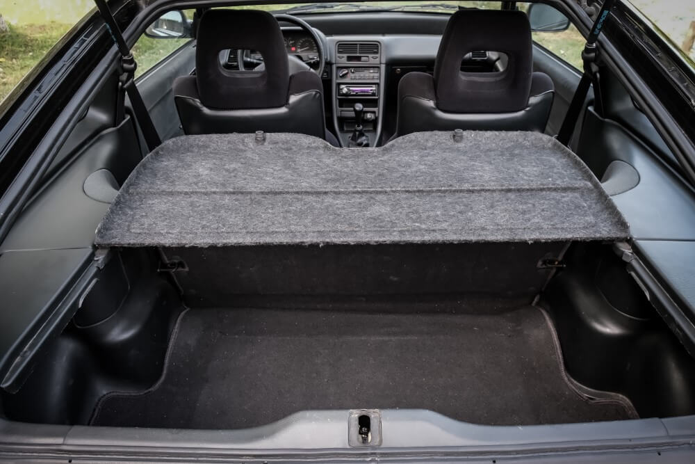 La linea rossa a 7200 giri invoglia a tenere giù il pedale del gas e, superati i tremila giri, lo scarico emette una vibrazione metallica inconfondibile, tipica di questi motori. Dai 5000 in su il tiro sembra non avere fine, spingendo in avanti la vettura come fosse caricata a molla. Il cambio aiuta perfettamente la progressione, veloce e preciso, e solo la tendenza al sottosterzo ci ricorda, al primo tornante, che stiamo guidando una trazione anteriore. Che è bella, scattante, veloce, divertente nel misto e, in questa livrea nera, anche piuttosto raffinata. Le linee della CRX sono infatti sportive ma anche estremamente misurate, senza inutili appendici o segni grafici a sporcarne la pulizia di base. Raffinatezza che, a favore di un feeling estetico più rabbioso, si perderà in parte con l’aggiornamento al successivo model year.