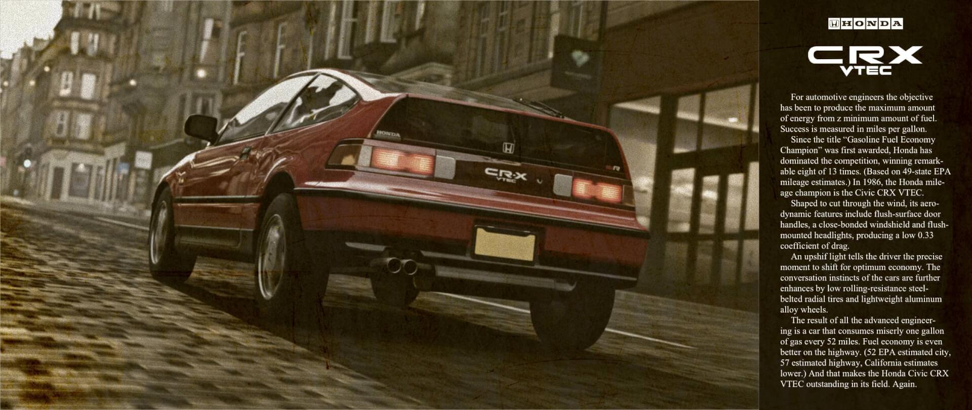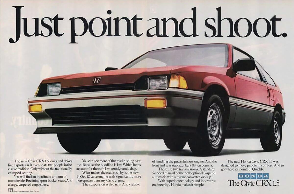 Honda, dal canto suo, in quegli anni rafforza la sua immagine di brand sportivo, sulla scia anche della partecipazione in Formula 1 e dell’aura mistica di campioni come Ayrton Senna; ancora oggi la prima generazione della NSX è considerata una delle sportive più equilibrate di tutti i tempi, seppur una vettura non alla portata di tutti. Tuttavia, per l’utente “normale”, la casa giapponese sfodera negli anni una lunga serie di proposte, dalle City Turbo e Beat per il mercato interno alle Integra Type R e S2000 alle varie versioni sportive della sempiterna Civic, lanciata per la prima volta addirittura nel 1972. Un filone, quest’ultimo, creato nel 1983 con la prima generazione della Honda CRX, che altro non è che una versione coupé della popolare compatta nipponica, e infatti su alcuni mercati viene venduta come Civic CRX (o Ballade CRX in patria).