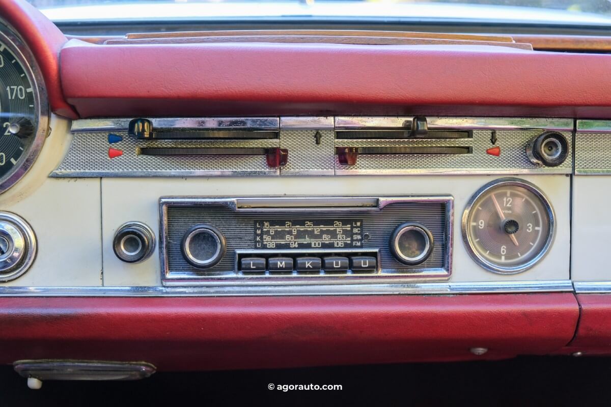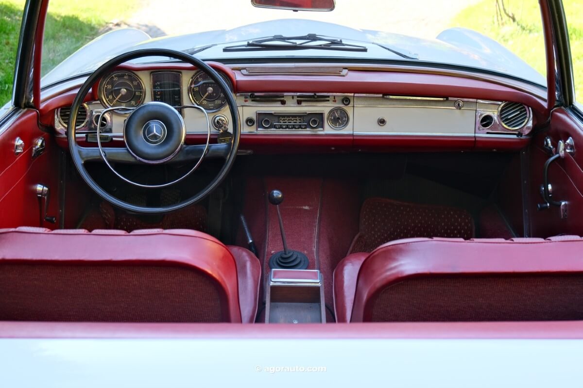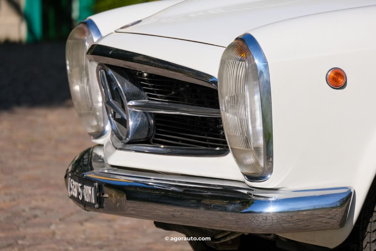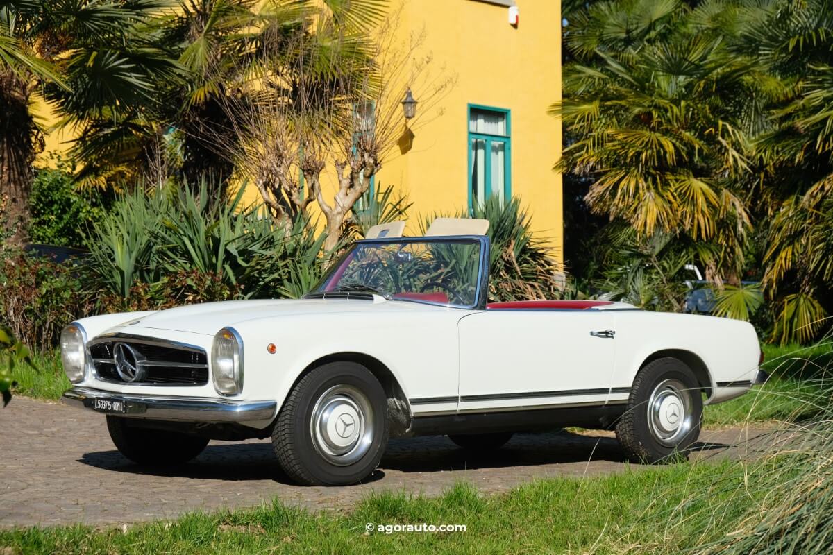Per raccontarvi la genesi e lo sviluppo della serie R113 abbiamo approfittato della disponibilità di un bell’esemplare appartenente alla collezione del dealer Coopermans.it: si tratta di una 230 SL del 1966, ultimo anno di produzione, venduta da nuova a Napoli e trasferita nella Capitale già l’anno seguente. Fermata a metà anni settanta, è stata recuperata in tempi recenti da un appassionato ed esperto del modello, che l’ha restaurata parzialmente e inserita pure in un volume monografico dedicato alla serie R113. L’esemplare entra nella collezione attuale nel 2008, e subito dopo viene riverniciata esternamente e perfezionata a livello meccanico. Ancora corredata come in origine sia della cappottina ripiegabile che del caratteristico hard-top, questa 230 SL sfoggia ancora gli interni originali, coi legni e i rivestimenti in pelle perfettamente conservati. Oggi la quotazione di una 230 SL “Pagoda” oscilla tra valori molto ampi, con un minimo di 30/35.000 euro per un esemplare da restauro totale (e prevedibilmente oneroso) a oltre 120mila euro per una vettura in perfette condizioni. Al momento della pubblicazione di questo servizio ci sono tre esemplari di Mercedes-Benz R113 inserzionati su Agorauto.com, due 230 e una 280. Date un’occhiata QUI, magari tra di esse c’è quella che fa per voi.