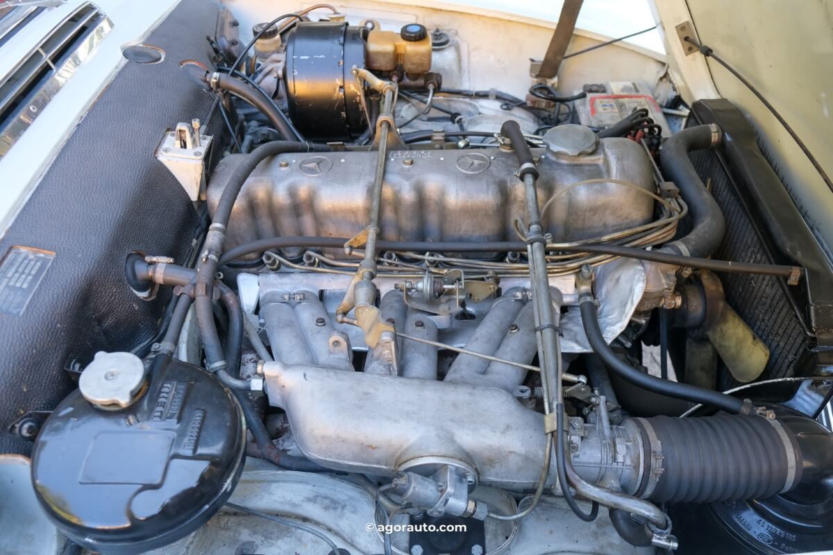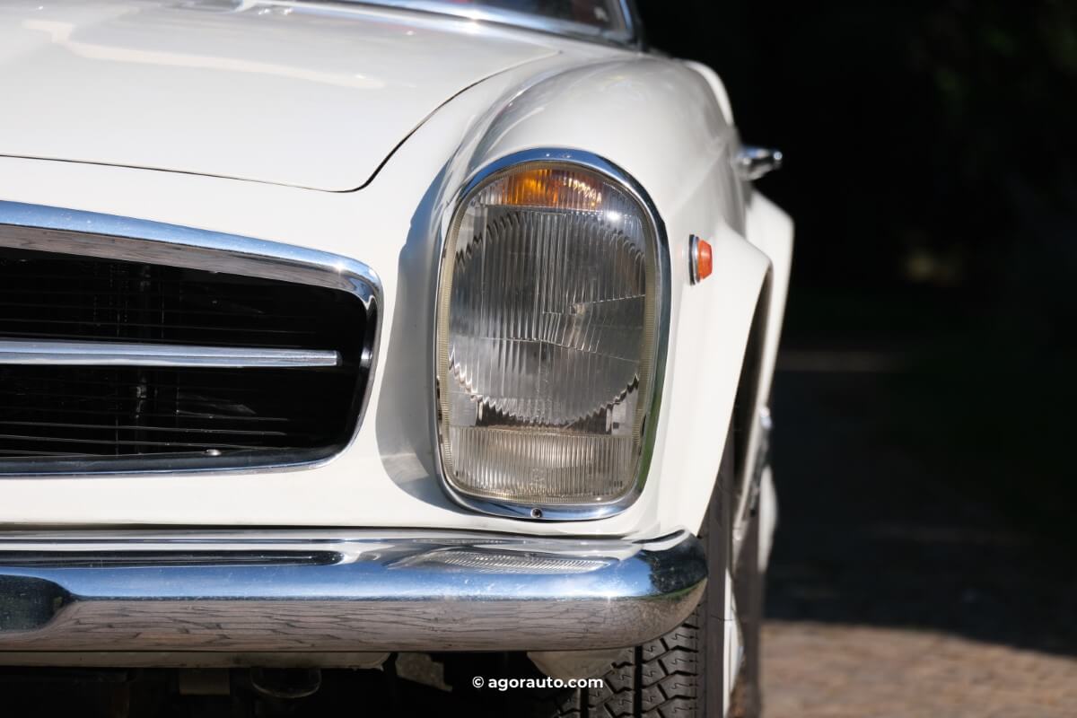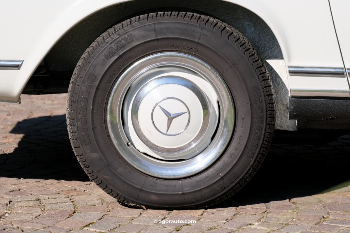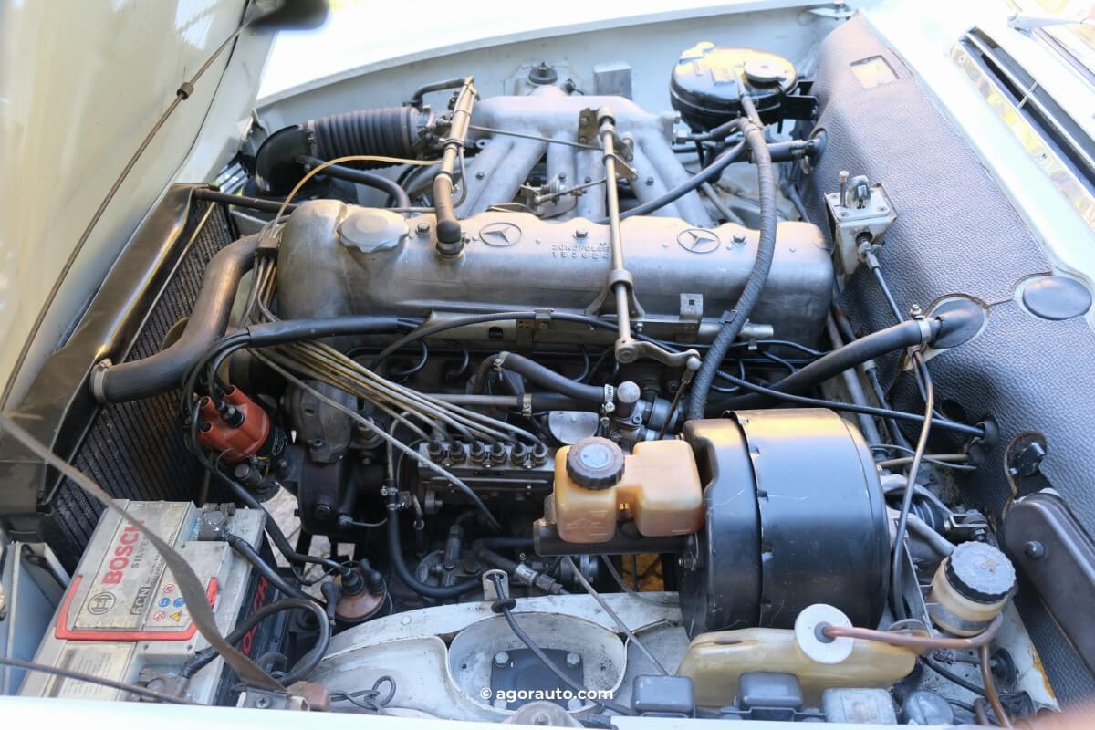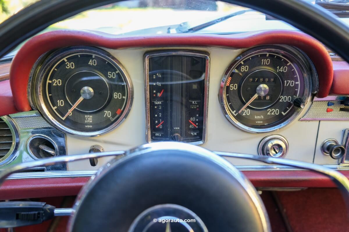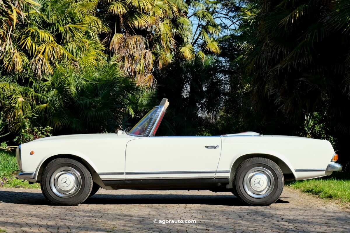 Visto il doppio ruolo di sostituta sia della 190 che della 300 SL, già a partire dal dicembre del 1966 la 230 SL viene aggiornata con una meccanica maggiorata (2496cc) che le vale il nome di 250 SL. Il nuovo motore M129 III a 7 supporti di banco in realtà non alza di molto l’asticella delle prestazioni: i cavalli restano gli stessi (150) e pure la velocità massima non si sposta di un capello (200 km/h); quella che ne beneficia maggiormente è l’erogazione, con una maggiore coppia e una migliore elasticità di marcia, e con uno scatto sullo 0-100 km/h che scende da 11,1 a 10 secondi netti. Da segnalare poi l’introduzione dei freni a disco anche al retrotreno. La 250SL resta a listino per appena un anno e un mese, passando alla storia come la “Pagoda” più rara: soli 5.196 esemplari. Già dal gennaio del 1968 viene sostituita nei listini dalla 280SL, spinta dal nuovo motore 130.983 da 2778 cc e 170 cv di potenza. Seguendo lo stesso criterio dell’aggiornamento precedente, anche questa volta a beneficiare dell’incremento di cilindrata non sono le prestazioni assolute (la velocità massima resta per l’ennesima volta invariata) quanto l’erogazione, grazie a una coppia più piena, che abbassa lo spunto necessario a raggiungere i 100 all’ora a soli nove secondi. La 280 SL rappresenta il canto del cigno della serie “Pagoda” e resta in produzione fino al marzo 1971, quando debutta la nuova serie R107, di cui vi abbiamo già parlato su Agorauto (trovate QUI l’articolo).